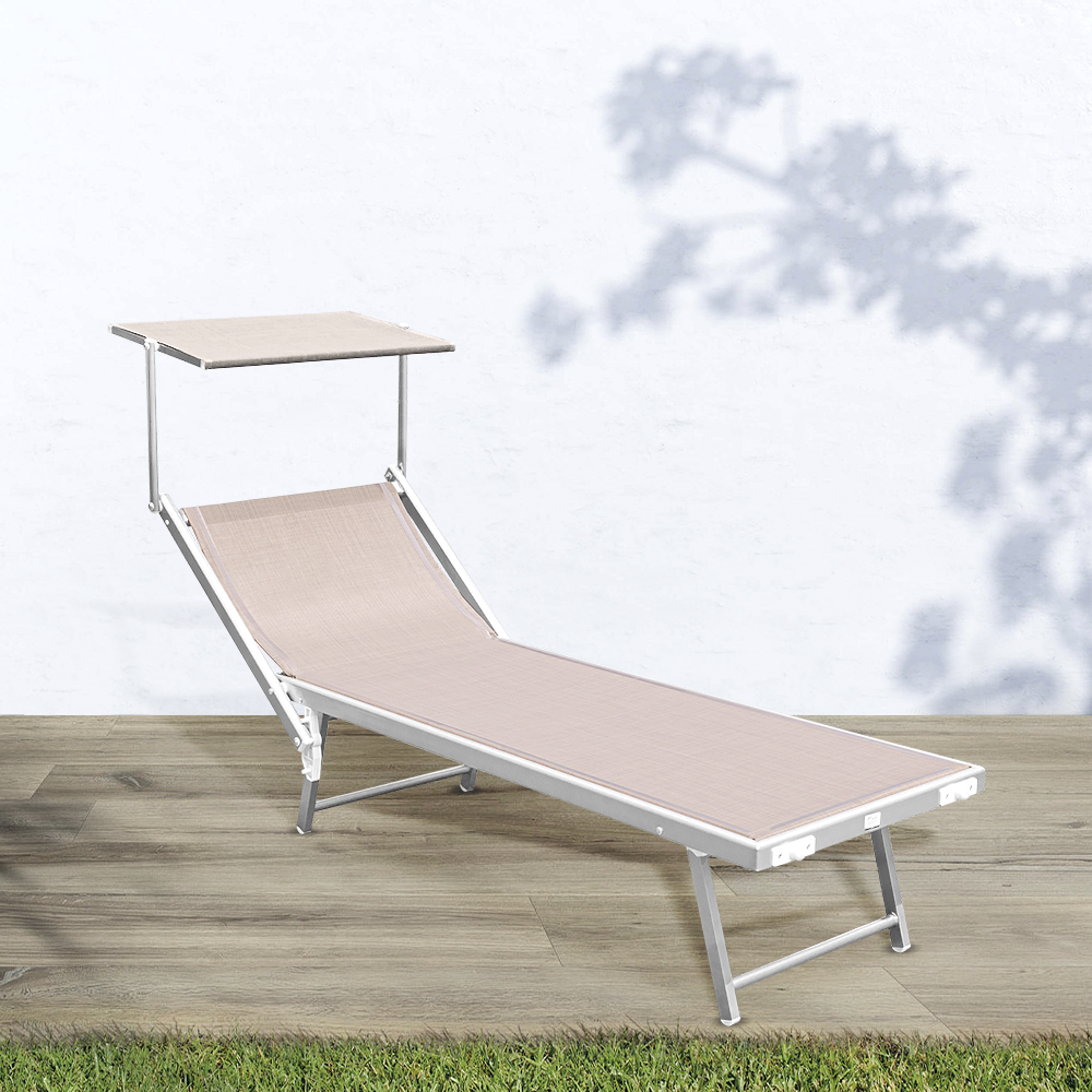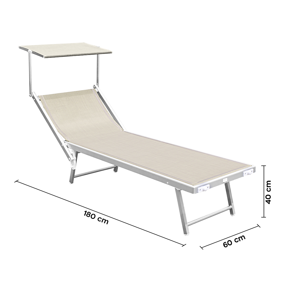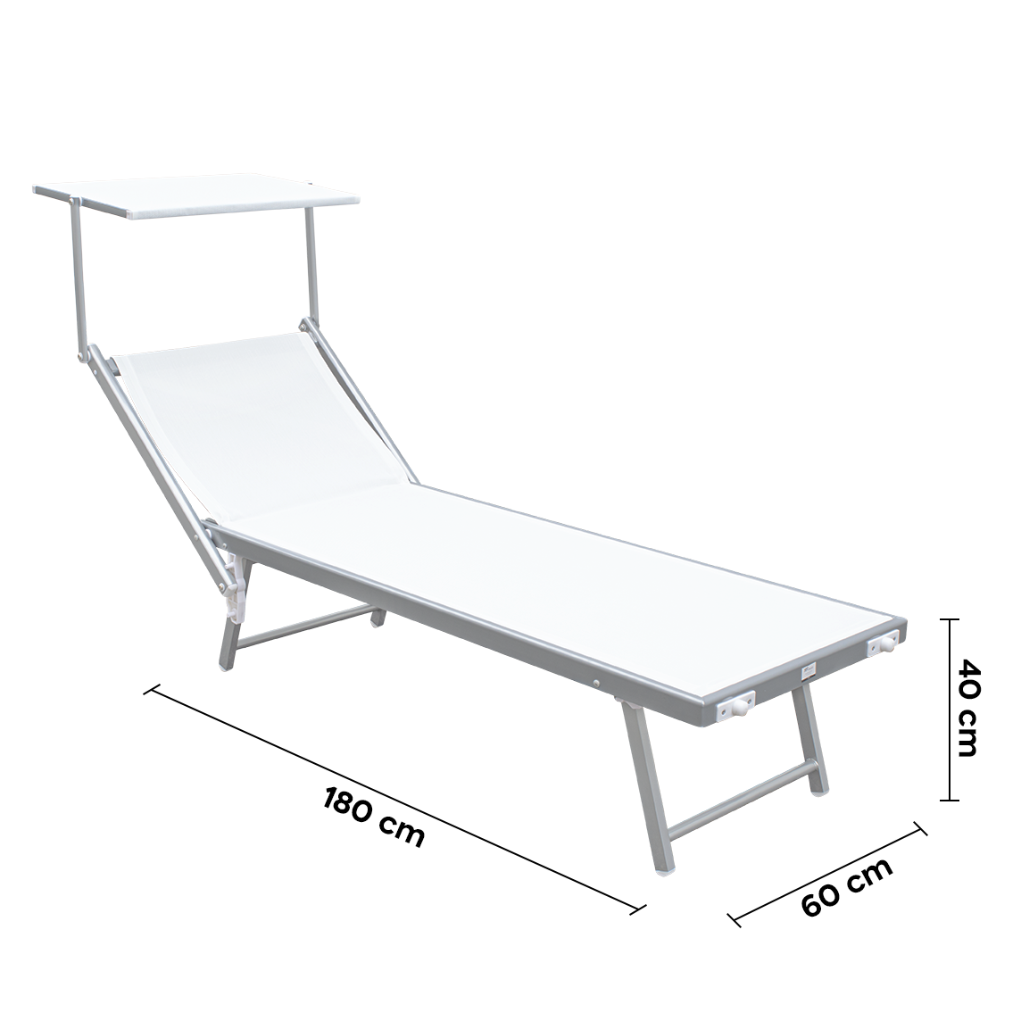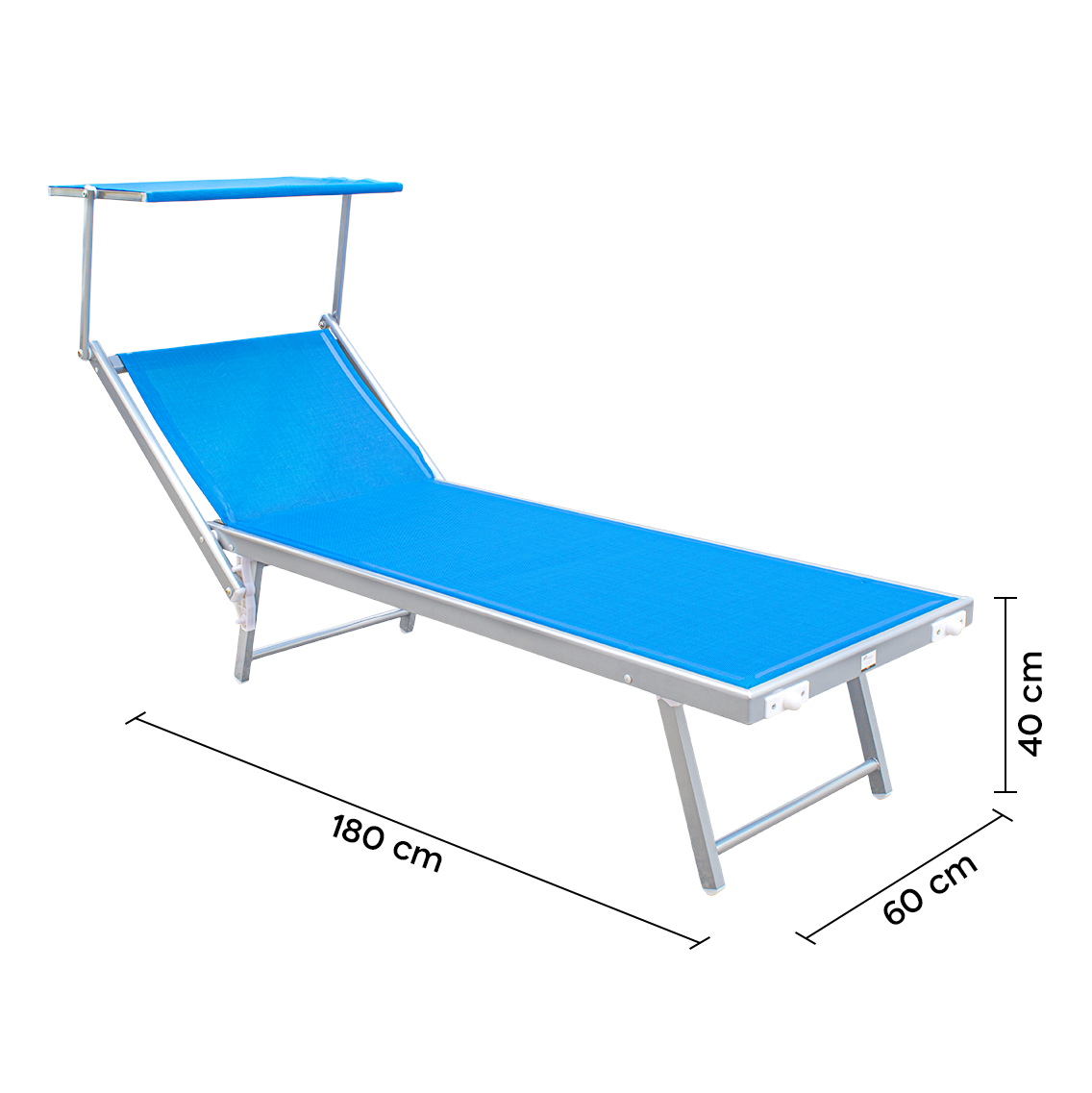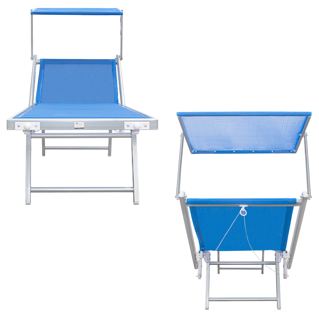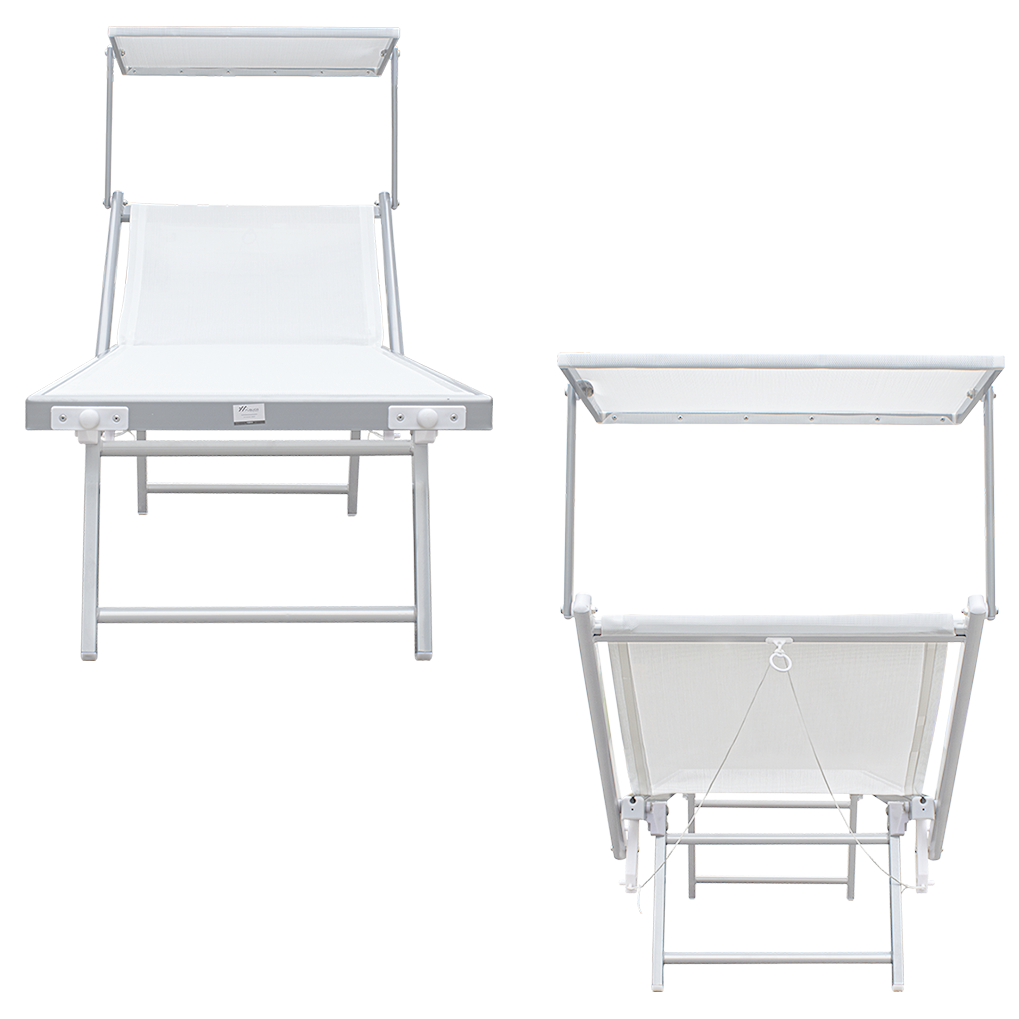 Esperienze di relax al massimo comfort con il nostro esclusivo Lettino Prendisole LUXURIOUS. Progettato per offrire un'esperienza di prendisole senza pari, questo lettino è la scelta ideale per coloro che desiderano unire stile, durata e funzionalità in un unico prodotto. Dotato di uno schienale reclinabile a 2 posizioni con sistema Smart Block, il nostro lettino assicura il massimo sostegno e comfort mentre ti godi il sole. La sua struttura rigida in alluminio anodizzato non solo garantisce una robustezza eccezionale, ma è anche resistente alla corrosione, ai raggi UV e alla salsedine, rendendolo perfetto per l'uso in spiaggia, in piscina o nel giardino di casa.Con una capacità di carico massima di 120 kg. Le gambe pieghevoli e salvaspazio consentono una facile conservazione e trasporto, mentre il rivestimento in textilene resistente all'usura e impermeabile assicura una durata nel tempo e una manutenzione minima. Il Lettino Prendisole LUXURIOUS non si limita solo al comfort, ma offre anche una protezione solare ottimale grazie al tettuccio parasole orientabile e ombreggiante. Regola l'angolazione a seconda delle tue preferenze per una protezione ottimale dalla luce diretta del sole, garantendo così una permanenza al fresco e al riparo durante le giornate più calde. Indispensabile per gli stabilimenti balneari e gli amanti del relax all'aria aperta, il nostro lettino è una scelta professionale destinata a durare nel tempo, offrendo prestazioni affidabili e comfort senza compromessi. Rilassati e goditi il sole con stile e comfort grazie al nostro Lettino Prendisole LUXURIOUS.