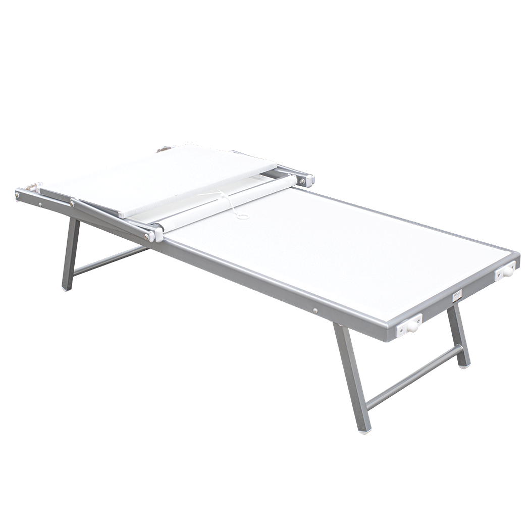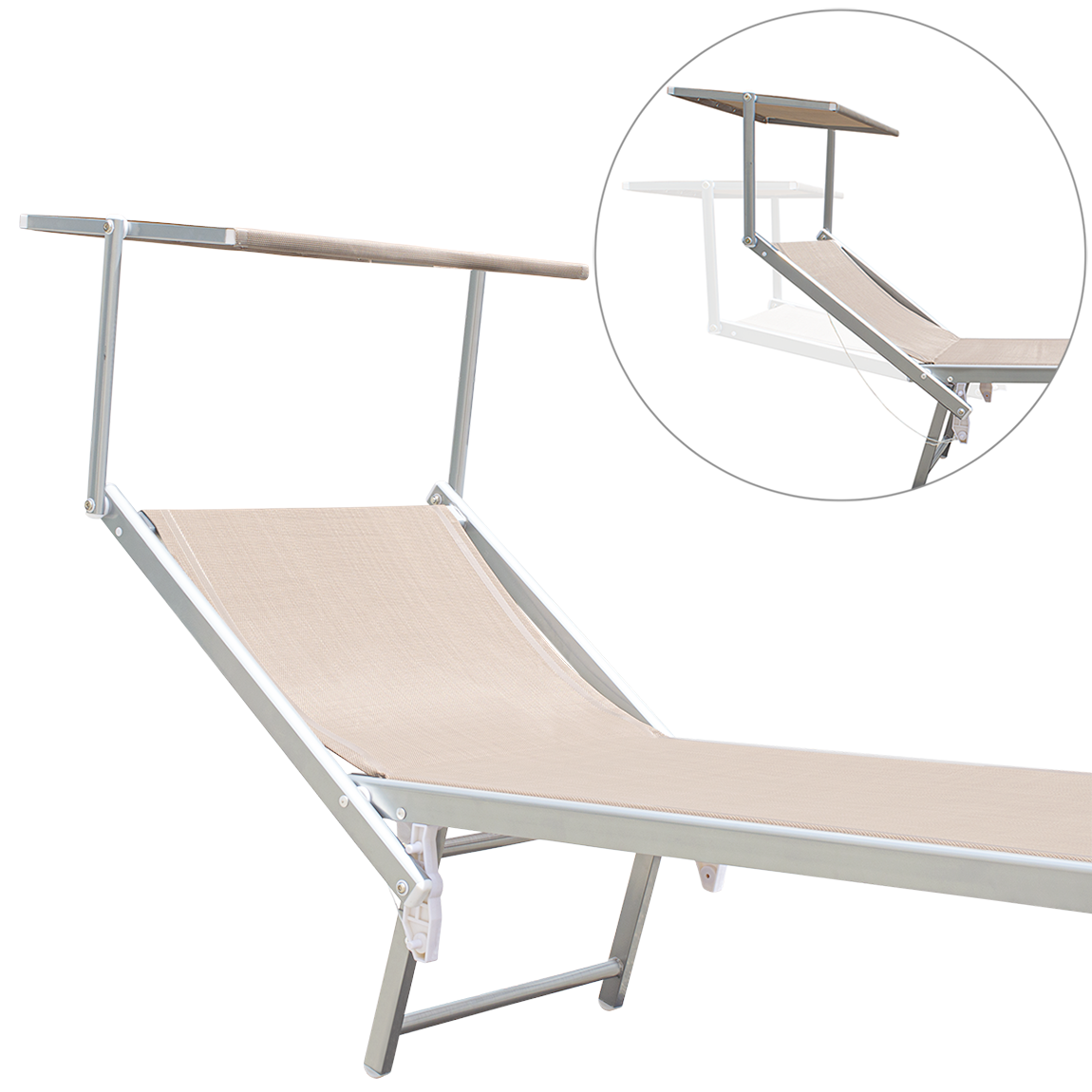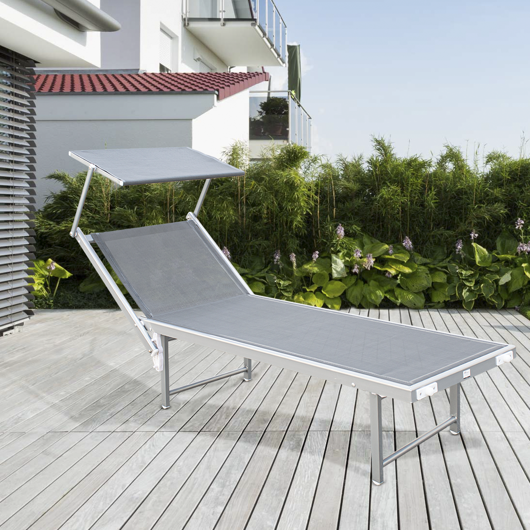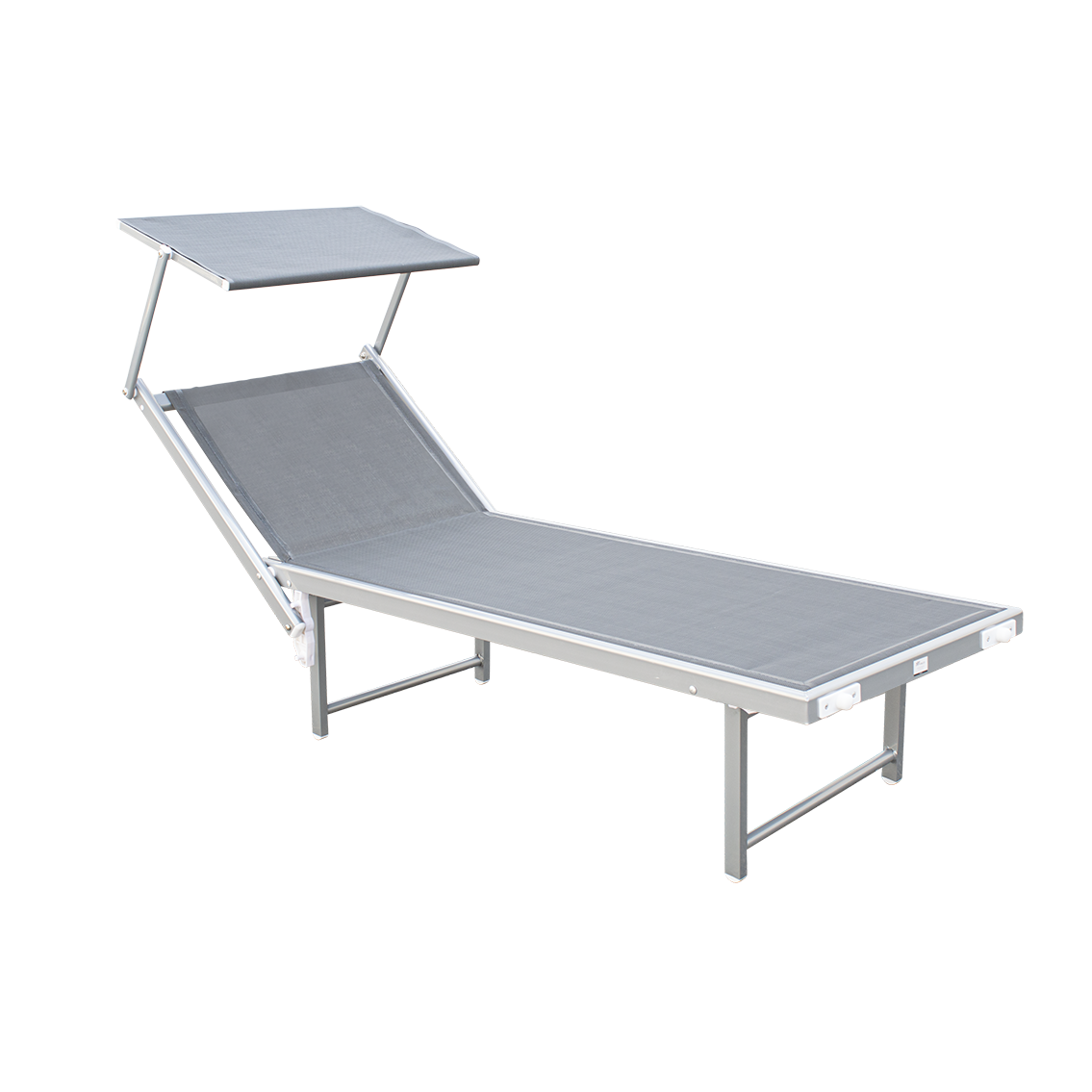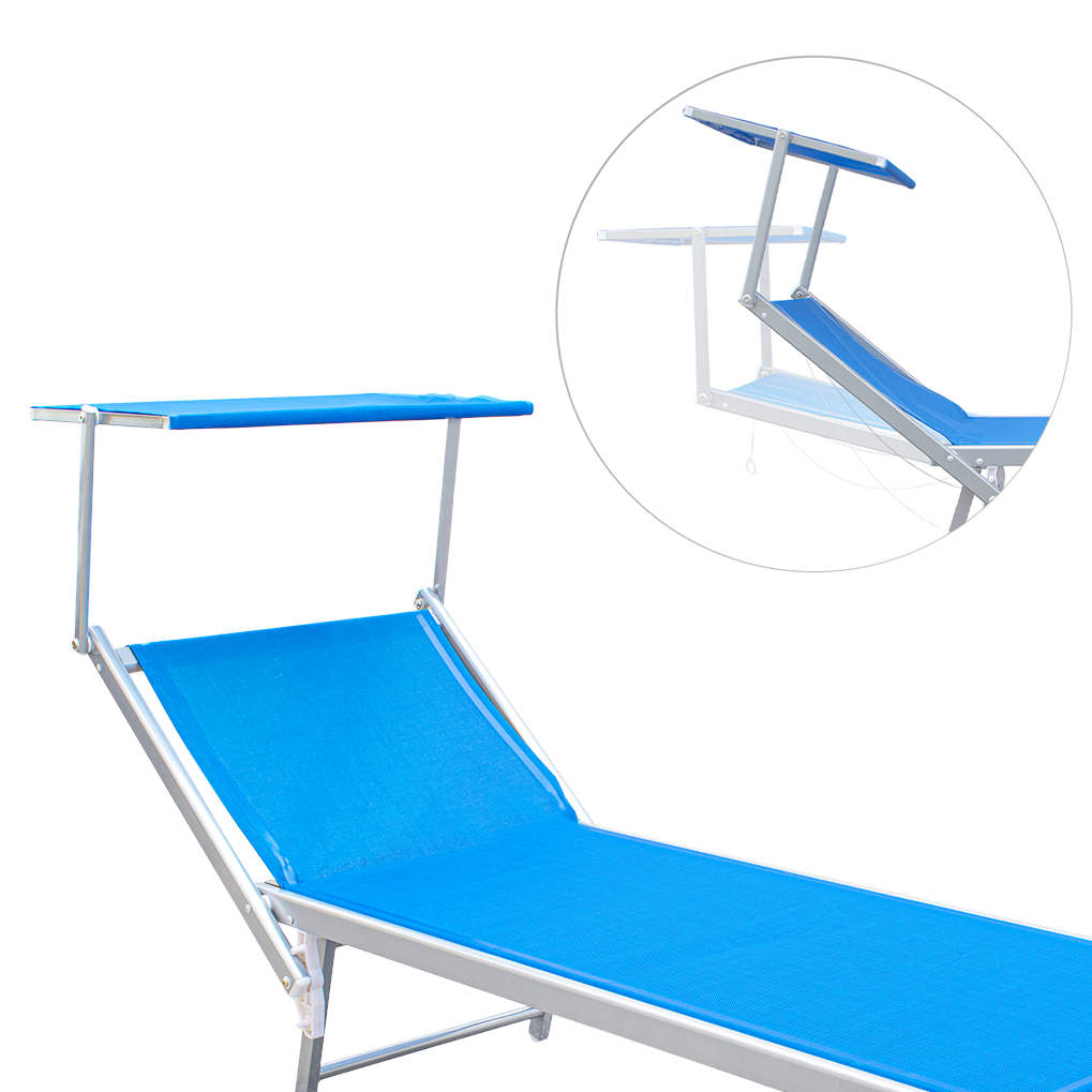 Esperienze di relax al massimo comfort con il nostro esclusivo Lettino Prendisole LUXURIOUS. Progettato per offrire un'esperienza di prendisole senza pari, questo lettino è la scelta ideale per coloro che desiderano unire stile, durata e funzionalità in un unico prodotto. Dotato di uno schienale reclinabile a 2 posizioni con sistema Smart Block, il nostro lettino assicura il massimo sostegno e comfort mentre ti godi il sole. La sua struttura rigida in alluminio anodizzato non solo garantisce una robustezza eccezionale, ma è anche resistente alla corrosione, ai raggi UV e alla salsedine, rendendolo perfetto per l'uso in spiaggia, in piscina o nel giardino di casa.Con una capacità di carico massima di 120 kg. Le gambe pieghevoli e salvaspazio consentono una facile conservazione e trasporto, mentre il rivestimento in textilene resistente all'usura e impermeabile assicura una durata nel tempo e una manutenzione minima. Il Lettino Prendisole LUXURIOUS non si limita solo al comfort, ma offre anche una protezione solare ottimale grazie al tettuccio parasole orientabile e ombreggiante. Regola l'angolazione a seconda delle tue preferenze per una protezione ottimale dalla luce diretta del sole, garantendo così una permanenza al fresco e al riparo durante le giornate più calde. Indispensabile per gli stabilimenti balneari e gli amanti del relax all'aria aperta, il nostro lettino è una scelta professionale destinata a durare nel tempo, offrendo prestazioni affidabili e comfort senza compromessi. Rilassati e goditi il sole con stile e comfort grazie al nostro Lettino Prendisole LUXURIOUS.
